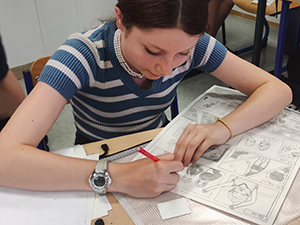Les jeunes disposeront d'une demi-journée par jour au minimum pour travailler avec le dessinateur. Découverte ou approfondissement des techniques, création de personnages, mise en place de gabarit pour les planches, conseil sur les plumes, pinceaux et encres, utilisation des trames (ombres sérigraphiées), entrainement sur les proportions corporelles, escapades en nature pour apprendre à dessiner le réel, les textures, les arbres et les personnages. Matériel entièrement fourni. Parallèlement, plusieurs activités de détente au choix, sportives ou de loisirs : grands jeux, balades ou baignades à la plage, escape game, sortie à Biarritz, sports collectifs ou individuels. Chaque journée se termine par une veillée animée organisée par l’équipe d’animation.