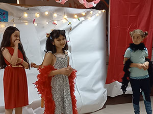 La moitié de la journée est consacrée à l'atelier théâtre en petits groupes ou en groupe entier.