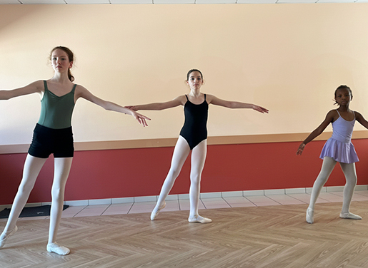 Répétitions le matin ou l'après-midi en petits groupes, environ 2h30 par jour et par inscrit. Au programme : technique, stature, sauts, positions, placement du corps, ateliers chorégraphiques... avec la danseuse diplômée d'État.