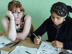 Les jeunes disposeront d'un atelier de 2h30 minimum par jour avec un dessinateur professionnel pour découvrir ou se perfectionner dans cette discipline. L'intervenant s'adapte au niveau de chacun, pour aborder les techniques, créer les personnages, mettre en place les gabarits pour les planches, utiliser les plumes, les pinceaux, les encres, les trames (ombres sérigraphiées), et s'entraîner sur les proportions corporelles. Des escapades en nature sont prévues pour apprendre à dessiner le réel, les textures, les arbres et les personnages. Autres activités : grands jeux, activités de loisirs et de détente, piscine, visite des environs, sortie plage à Royan. Veillée animée chaque soir.